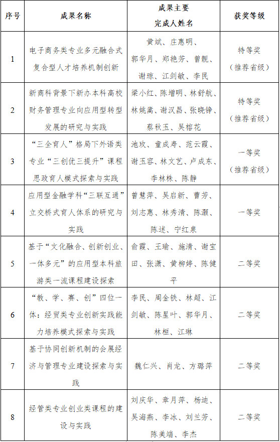 2020年校级教学成果奖评选结果