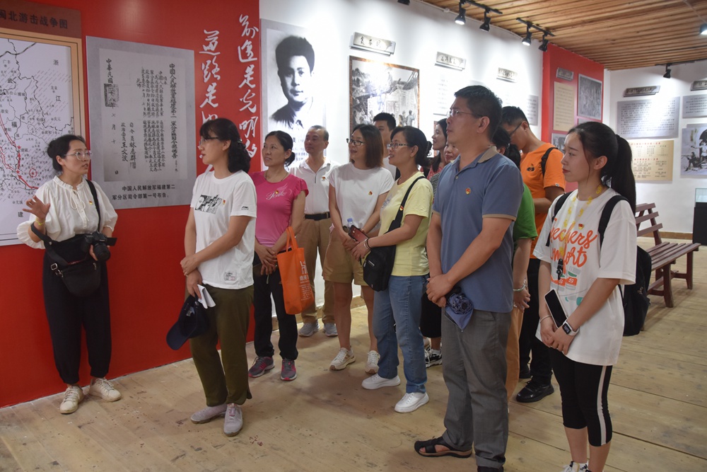 随后,各位党员前往迪口镇闽浙赣省委驻地纪念馆,首先面向党旗,庄严举起右手宣誓,重温入党誓词。随后,大家跟着讲解员,分别观看和听讲不忘初心、苦难记忆、光辉岁月、重温经典、绿水青山、浩气长存、壮怀豪情、红韵流长和只争朝夕等九个展馆陈列的史实。通过纪念馆里的一段段文字、一帧帧照片、一幅幅绘画、一件件实物等史实,并跟着讲解员唱响《闽北游击区革命歌谣》,体会“对党忠诚、敢为人先,不怕牺牲、无私奉献”革命斗争精神。各位党员心潮澎湃,纷纷表示要更加坚定理想信念,不忘初心跟党走,努力拼搏,为学校高质量发展多作贡献!