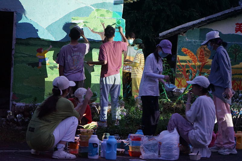 实践队成员开展乡村墙绘活动