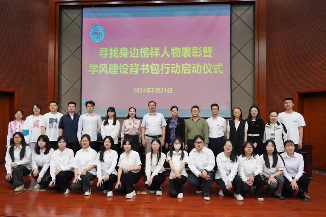 5月21日,学院在马尾校区召开“身边榜样人物表彰暨学风建设背书包行动启动仪式”大会。校党委副书记蒲文庆,学生工作部副部长、学院党政班子、辅导员及学生代表参加大会。会议由学院党委副书记主持。
