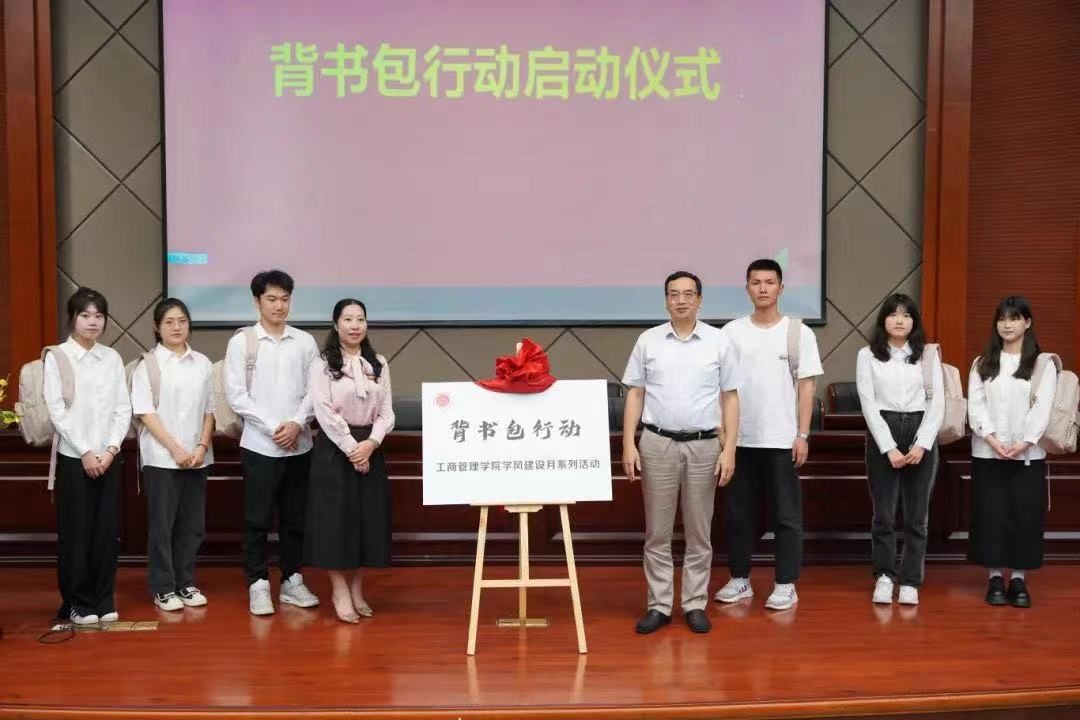 校党委副书记蒲文庆为学院学风建设月“背书包”行动启动仪式揭幕,并向获得荣誉的同学们表示祝贺,希望同学们要树立坚定的理想信念,把个人的人生价值和成长进步融入国家和民族的事业之中。要练就过硬的专业本领,把学习作为大学的首要任务,践行“知行合一”。要培养卓越的创新能力,保持锐意创新的勇气,勇当科技创新的先锋。要传承高尚的大爱品格,踏踏实实修好品德,成为有大爱大德大情怀的人。希望工商管理学院能持续开展好青年身边榜样人物选树工作,让榜样力量在校园内得到更广泛的传播和更深沉的沉淀,共同构建充满活力、和谐向上、具有优良学风和深厚文化底蕴的学习型校园。