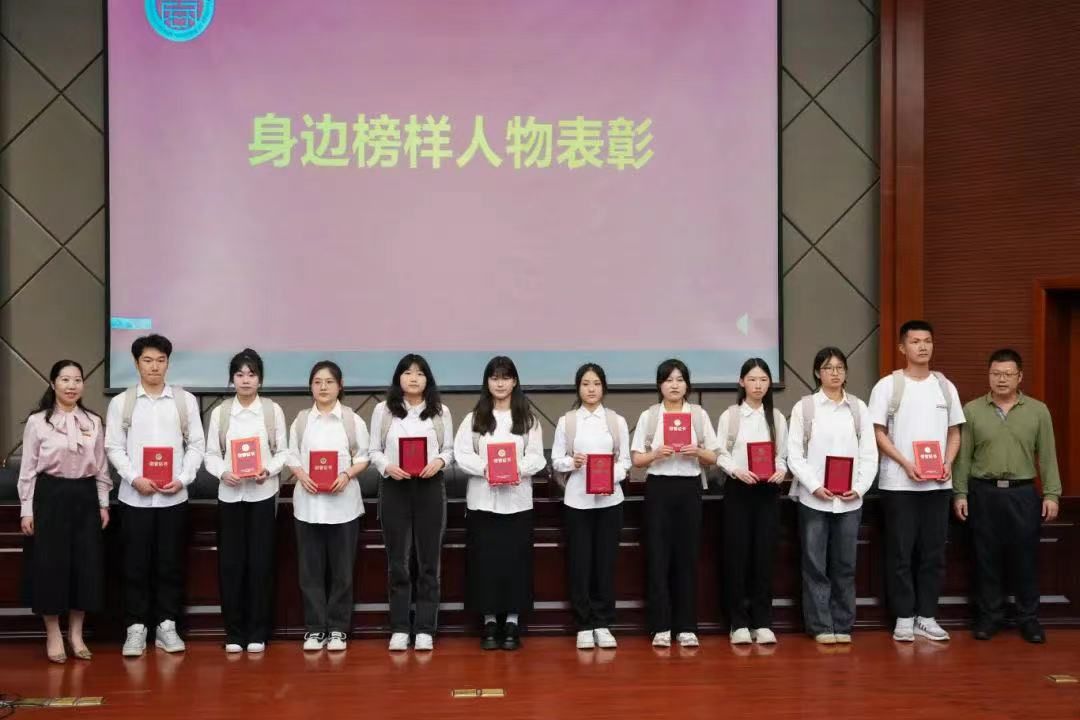 学院党委书记陈达颖宣读身边榜样人物表彰决定,榜样之星徐紫怡等14名同学,榜样之星提名朱雅欣等12名同学。学生工作部副部长缪晓斌、副院长严谨、团委书记韩玉娟颁发荣誉证书。