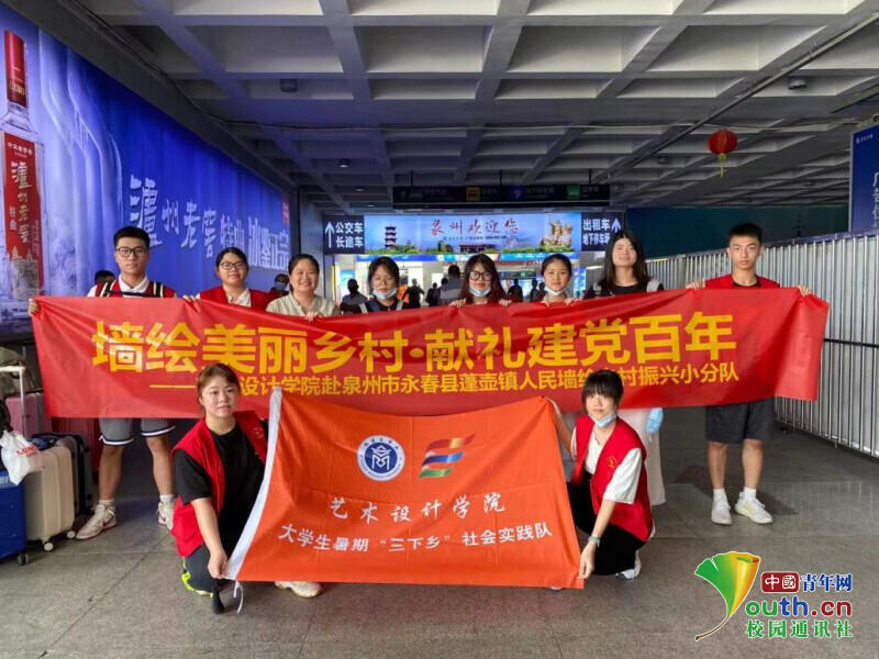 【中国青年网】kaiyun登录中国入口登录艺设学子墙绘美丽乡村,献礼建党百年