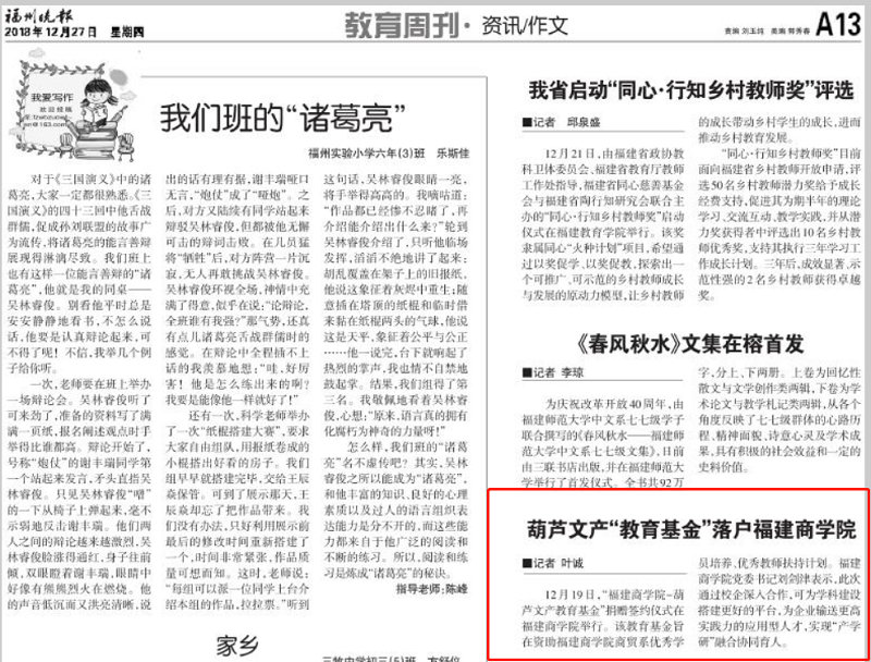 福州晚报:葫芦文产“教育基金”落户kaiyun登录中国入口登录