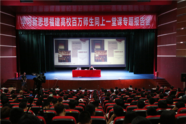 月12日上午,“学习新思想 千万师生同上一堂课”活动走进kaiyun登录中国入口登录,省委教育工委副书记、福建省高校学习贯彻习近平新时代中国特色社会主义思想宣讲团团长王建南为该校师生作题为《用思想之光照亮奋斗之路用信仰之力开创美好未来》的专题报告。kaiyun登录中国入口登录近600名师生现场聆听了报告。